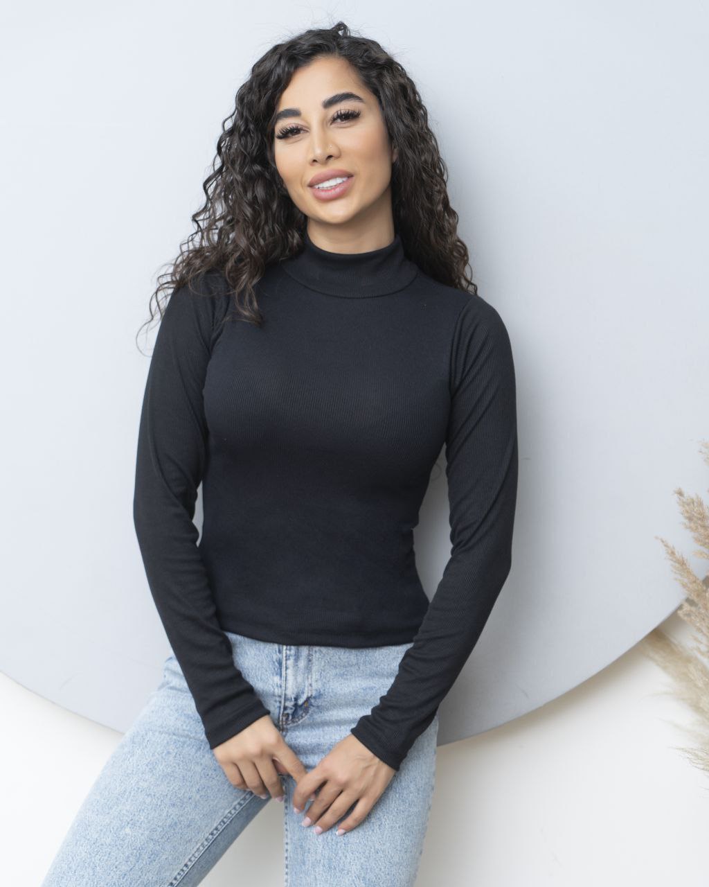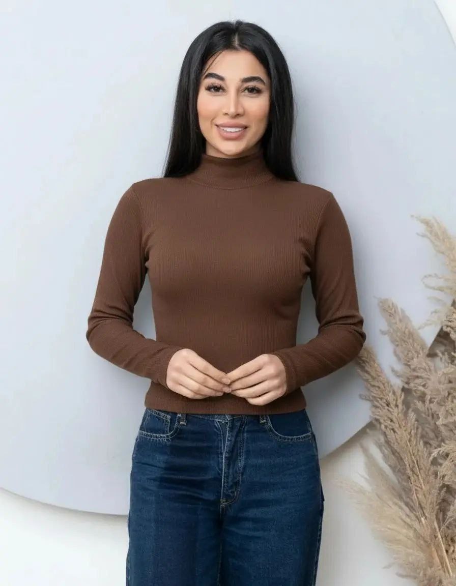 بلوز دخترانه یقه اسکی پارچه فانریپ (کبریتی) کشی و لطیف فری سایز۳۶تا۴۴